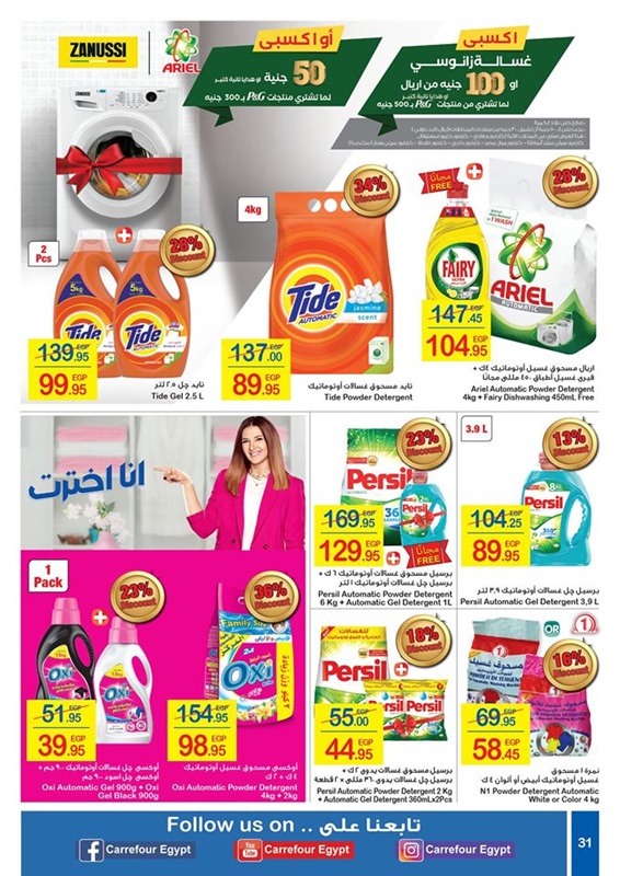 مسحوق غسيل أوتوماتك برسيل 6 كيلو بالإضافى على عبوة مسحوق سائل 4 لتر بسعر 129 جنيه بدلًا من 169 جنيه.