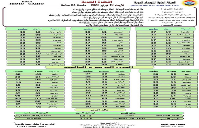 وفيما يلي بيان درجات الحرارة المتوقعة اليوم