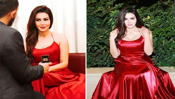 الحاج في حفل خطوبتها وهي ترتدي فستانًا أحمراللون لفت أنظار متابيعها، الذين