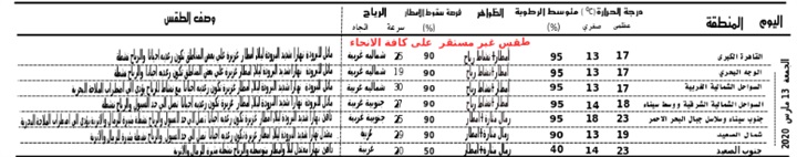 درجات الحرارة غدا الجمعة 13-3-2020 في مصر