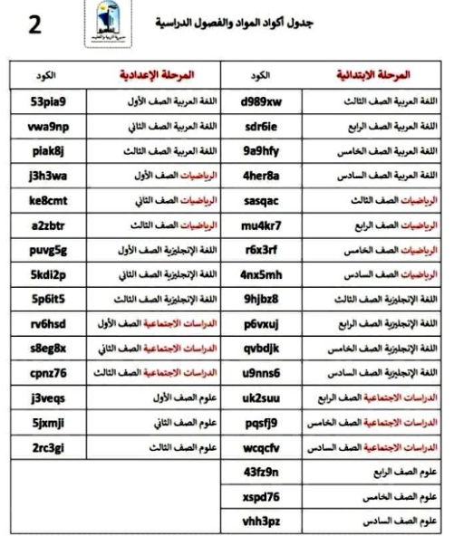 كما ننشر لكم جدول أكواد الابحاث لكل مادة فى "مشروع البحث"