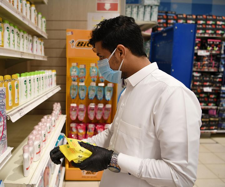 وأظهرت وكالة الانباء السعودية دخول وخروج المواطنين والمقيمين في محافظة جدة بصورة منظمة في الأسواق التجارية ومحال بيع المواد الغذائية، وذلك مع الحرص على تطبيق إرشادات وتعليمات إدارة هذه الجهات التي تراعي الاحترازات التي وجهت بها الجهات المعنية من ارتداء القفازات والكمامات واستخدام المعقمات والمطهرات والحفاظ على النظافة بشكل عام.