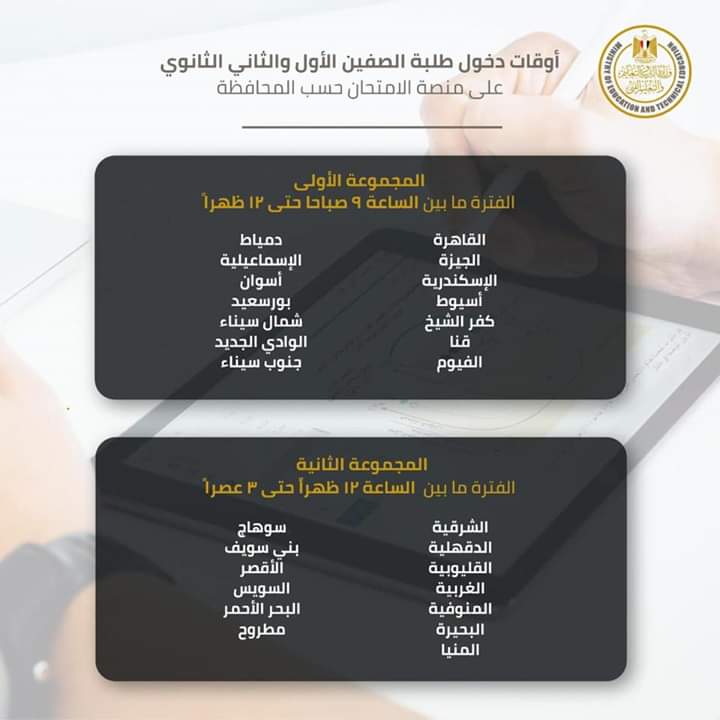 يؤدي في الوقت الراهن الطلاب امتحان اللغة العربية للصف الاول الثانوي على منصة الامتحان بيرسون (Pearson)، وقد بدأت المحافظات الإمتحان من الساعة التاسعة صباحا.