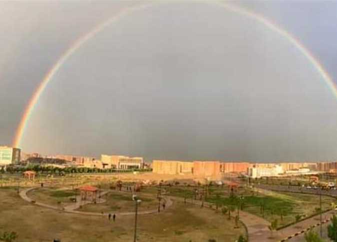 قوس قزح ظهر في محافظات الصعيد وخاصة المنيا وسوهاجـ، حيث استمر هطول الامطار هناك لساعات وانقطع التيار الكهربائي أيضا.
