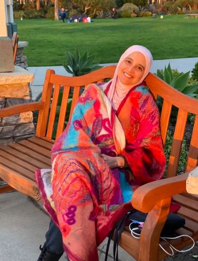 وحرصت الفنانة حنان ترك في هذه لصورة على ارتداء وشاح بألوان متداخلة ومبهجة تناسب إطلالتك النهارية والحجب حرصت على اختياره بلون هادئ على وجهها.