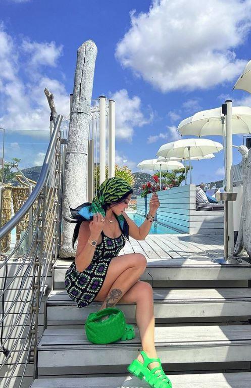 حيث ظهرت خلال الصور بإطلالة مميزة اعتمدت فيها على شنطة ماركة Bottega veneta سعرها 2500 دولار أي ما يعادل 47 ألف جنيه، والحذاء من ماركة prada ويبلغ سعره 780 دولارًا، بما يقارب 14 ألف جنيه.
