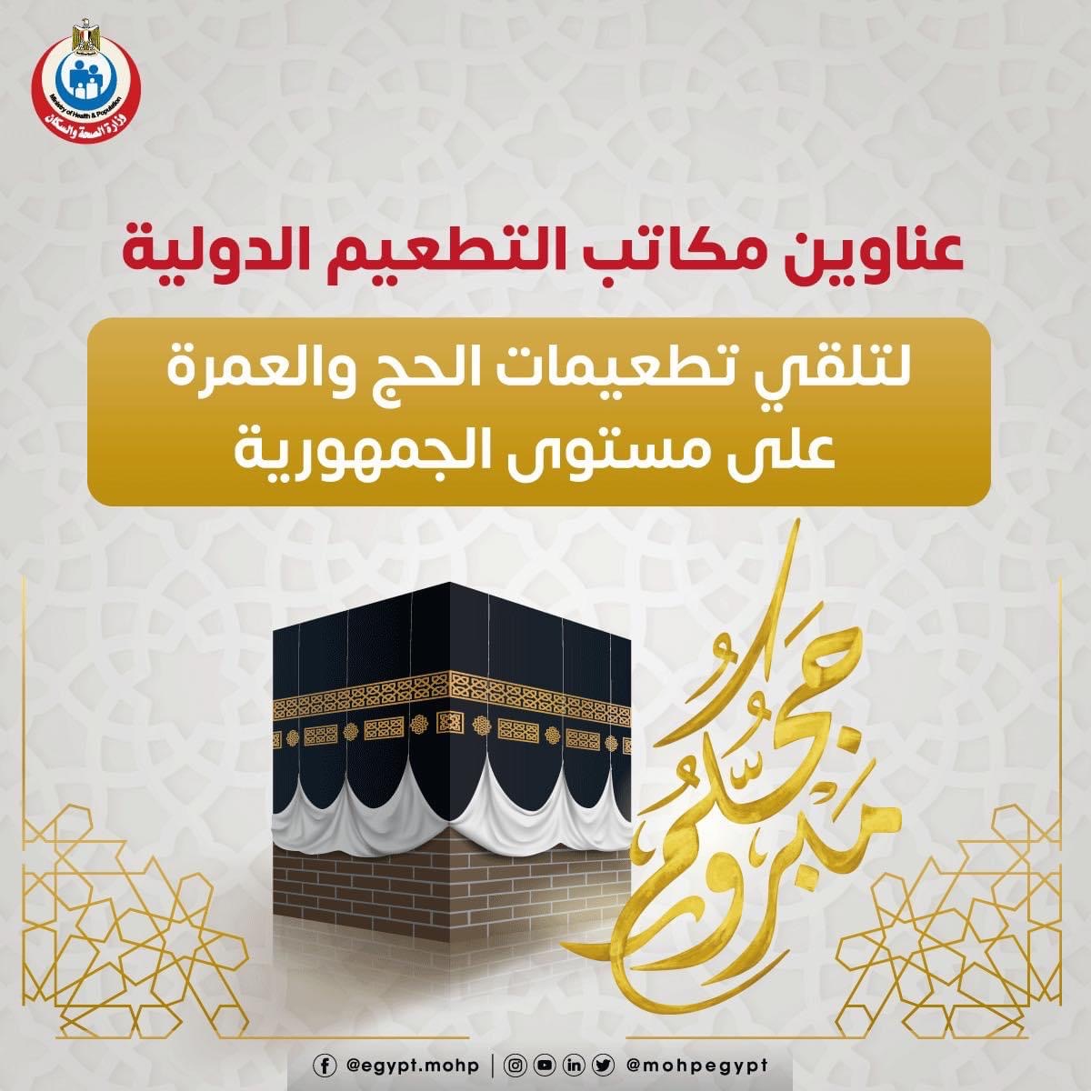 أماكن مكاتب تطعيمات الحج الإلزامية على مستوى الجمهورية