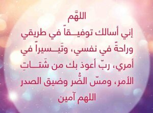 - رب أدخلني مدخل صدق وأخرجني مخرج صدق، واجعل لي من لدنك سلطانًا نصيرًا، رب اشرح لي صدري ويسر لي أمري واحلل عقدة من لساني يفقهوا قولي، بسم الله الفتاح، اللهم لا سهل إلا ما جعلته سهلًا وأنت تجعل الحزن إذا شئت سهلًا يا أرحم الراحمين، اللهم افتح عليَّ فتوح عبادك العارفين، اللهم انقلني من حولي وقوتي وحفظي إلى حولك وقوتك وحفظك، اللهم اجعل لي من لدنك سلطانًا نصيرًا.