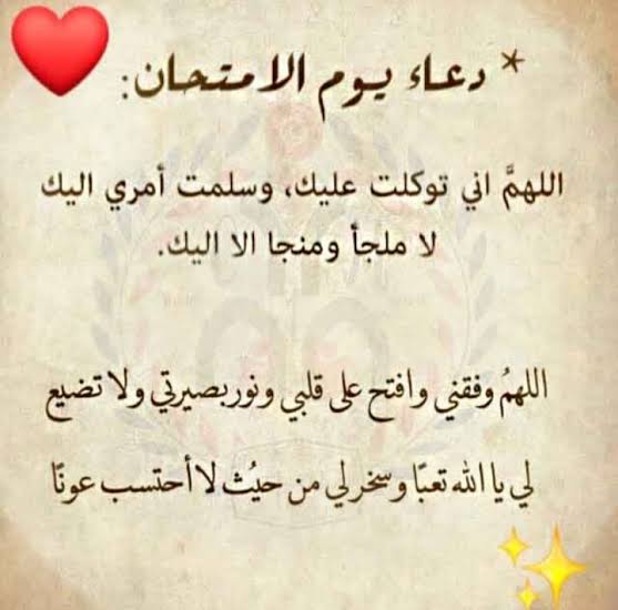 دعاء الامتحان، مكتوب دعاء تيسير الامتحانات قبل دخول الاختبار، هو طلب الله تعالى للتوفيق والنجاح فى الامتحان، يسهل عليهم تذكر الدروس والإجابة الصحيحة فى الأ ختبارات، من الأحسن أننا نصلي إلى الله سبحانه وتعالى فى جميع الظروف، سواء للأفضل أو للأسوأ، أو فى أوقات الرخاء أوالشدائد، يجب أن نصلى إلى الله سبحانه وتعالى، ولذلك يجب علينا تعلم أفضل الأدعية والكلمات التي نقولها أو ندعى بها فى وقت الامتحان.