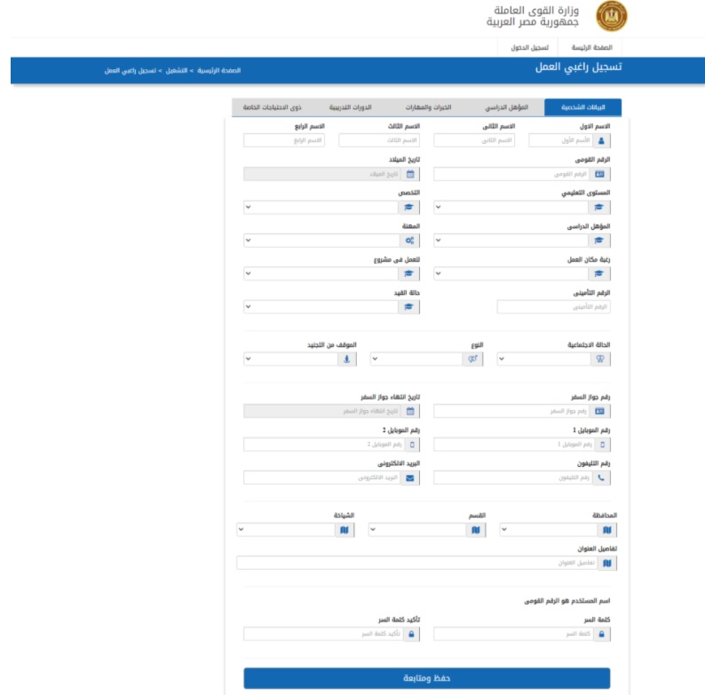 الدخول من أجل تسجيل وزارة القوى العاملة العمالة الغير منتظمة بالضغط هنــــا.