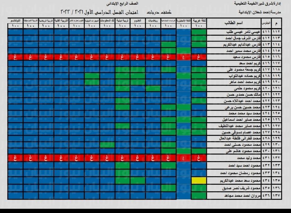 دلائل ألوان نتيجة الصف الرابع الابتدائي 2023 كالتالي:-