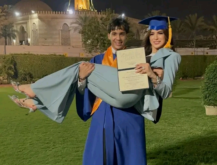 وظهرت آمال ماهر في إحدى الصور، وابنها يحملها على ذراعيه وهي ترتدي قبعة التخرج، كما ظهرت في الفيديو امال ماهر وهي تعانق نجلها عناق حار، ونالت صور وفيديوهات امال ماهر مع نجلها في حفل تخرجها اعجاب الكثير من المتابعين علي مواقع التواصل الإجتماعي.