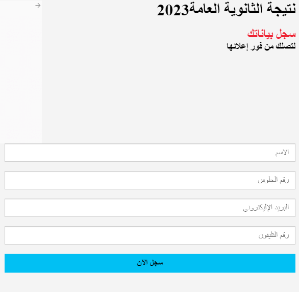 وخصصت بوابة الفجر الإلكترونية رابطا مهما وفعالا ومباشرا، يمكن الطلاب من الوصول للنتيجة فور الاعتماد من الوزير، حيث سيكون هنا عبر هذا الرابط فقط يمكنكم الضغط عليه وكتابة البيانات المخصصة للطلاب المتمثلة في (البريد الالكتروني - رقم الهاتف المحمول - الاسم - رقم الجلوس الطالب)، حيث يجب الضغط هنا للمتابعة، وللحصول على نتيجة الثانوية العامة 2023