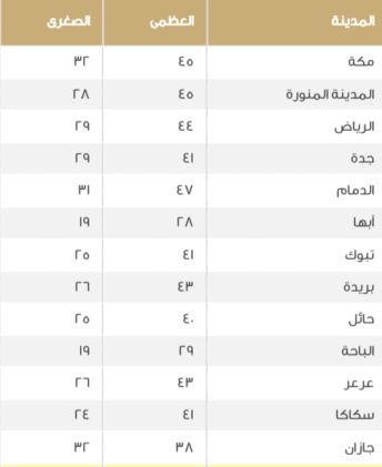 الحالة الجوية في المملكة العربية السعودية.. درجات الحرارة