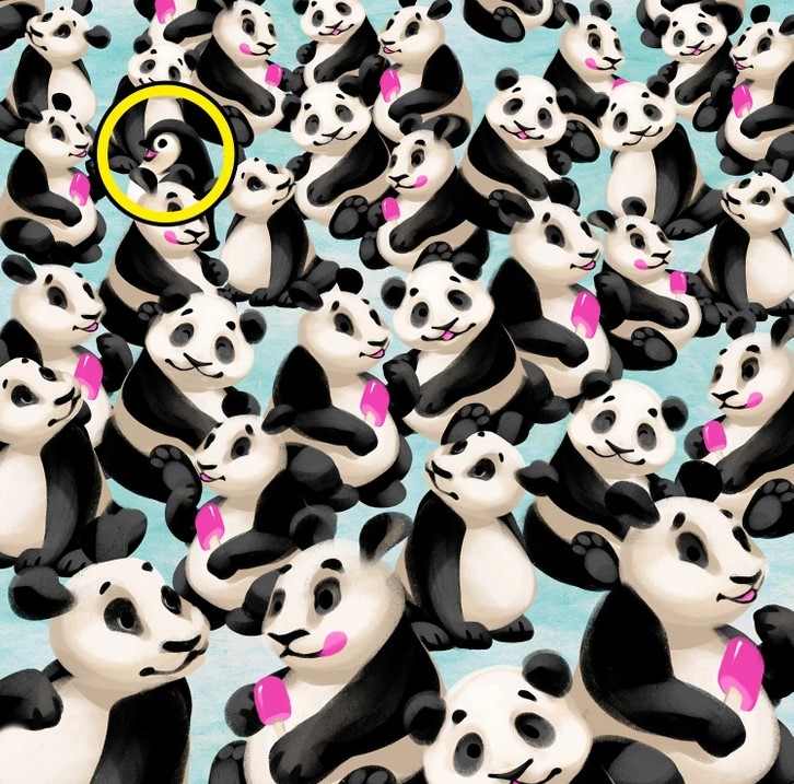 نرى في الصورة مجموعة من دببة الباندا الجميلة وهم يتناولون الأيس كريم، قد يبدو لك بأن كل شيء عادي في الصورة، ولكن هناك بطريق مخفي هنا ويجب أن تعثر عليه بسرعة، هل يمكنك العثور عليه في مدة لا تتجاوز ست ثوان؟ عليك أن تستغل الوقت الذي منحناه لك وتعثر على البطريق بسرعة، بدأ العد التنازلي الآن، ويمكنك طلب المساعدة من صديق أو أحد أفراد العائلة من أجل التوصل إلى الحل بسرعة.