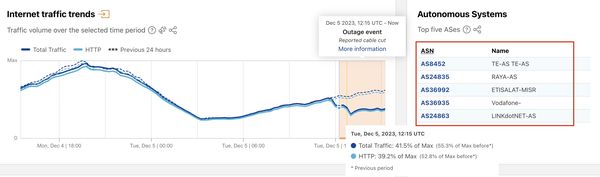 فجر المهندس حاتم الطوخي، مدير إدارة نظم تكنولوجيا المعلومات بموقع صدى البلد، مفاجأة بشأن حالة الإنترنت في مصر، قائلا، إن الإنترنت في مصر فقد مايزيد عن 45٪ من إجمالي طاقته الاستيعابية، وذلك بسبب مشاكل في كابلين بحريين "FLAG & SEAMEWE4”.
