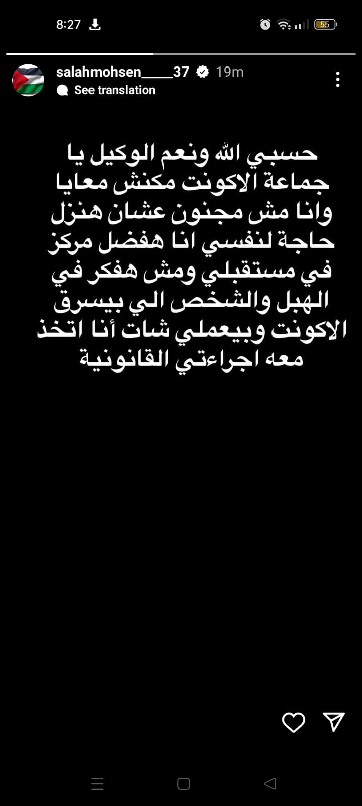 تصدر اسم اللاعب صلاح محسن منذ قليل تريند جوجل، حيث انتشرت صور مسربة عبر موقعه الرسمي الخاص بالصور والفيديوهات الشهير «إنستجرام» وانهالت التعليقات السلبية نحوه، مما دفعه لنشر ستوري عبر الأكونت الرسمي منذ ساعات قليلة قائلا «حسبى الله ونعم الوكيل ياجماعة الاكونت مكنش معايا وانا مش مجنون علشان انزل لنفسي انا هفضل مركز في مستقبلي ومش هفكر في الهبل دا». وسوف يتخد الاجراءات القانونية ضد من قام بهذا.