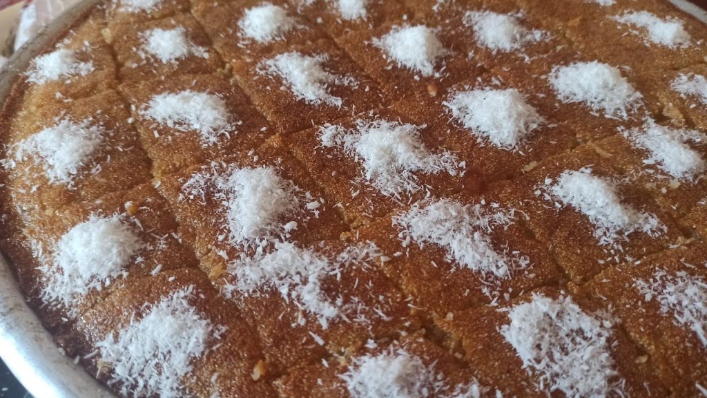 - اتركي البسبوسة تبرد قليلًا قبل تقطيعها وتقديمها مع القطر.