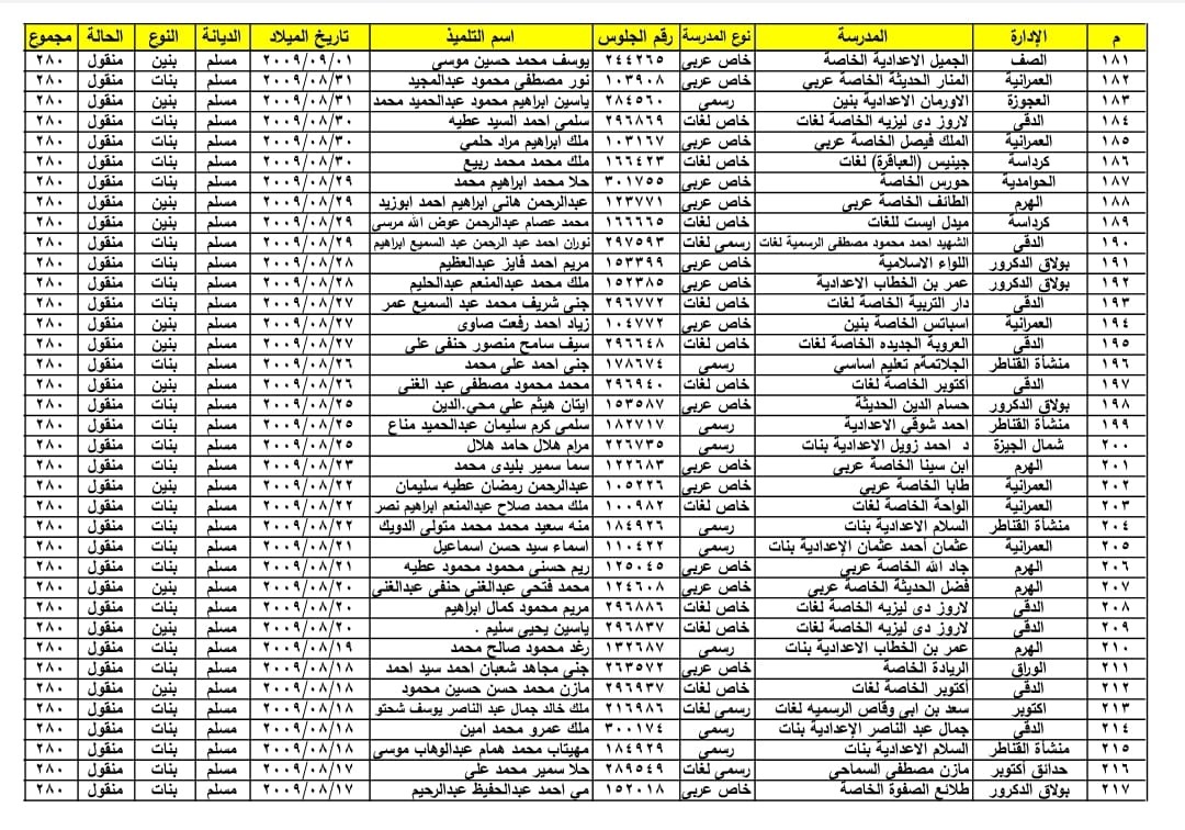 عاجل: أوائل الشهادة الإعدادية في محافظة الجيزة (صور)