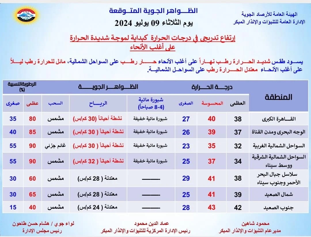 أسخن صيف..بيان مهم من الأرصاد بشأن طقس اليوم الثلاثاء 9 يوليو