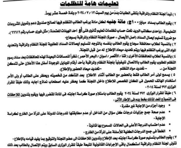 تعليمات هامة يجب اتباعها اثناء تقديم طلب التظلم لعام 2024