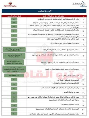 وتشمل اللائحة غرامة مالية قدرها 50 جنيهًا على الركاب الذين ينتظرون داخل المحطات لأكثر من ساعتين بعد عبورهم من خلال بوابات التذاكر. يتم تطبيق هذه الغرامة لمنع الانتظار داخل المحطات بعد استخدام التذكرة ودخول المحطة.