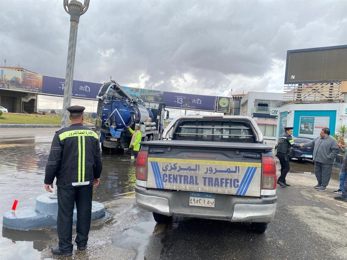 كما تم التنسيق مع الجهات المعنية لإرسال سيارات شفط المياه في مناطق تجمع الأمطار، تحت إشراف اللواء دكتور علاء فتح الله، لضمان عدم تأثر الحركة المرورية وحماية المواطنين أثناء الظروف الجوية غير المستقرة.