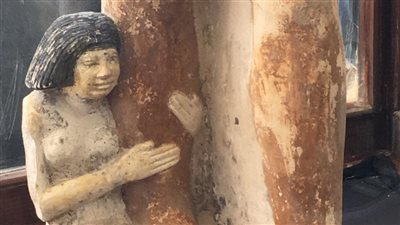 "لما المصرية القديمة تسمع ياسمين عز".. تمثال أثري لزوجة تحت أقدام زوجها (صور)