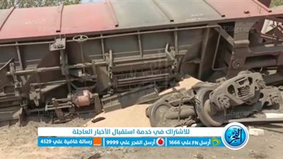 "غلال متناثرة علي القضبان".. آثار حادث انقلاب قطار بضائع بالبحيرة (فيديو وصور)