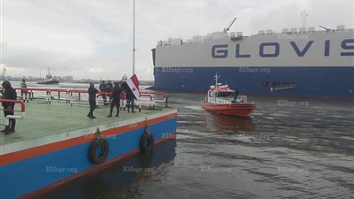"الفجر" ترصد عبور 4 سفن في التشغيل التجريبي الثاني للكوبري العائم ببورسعيد (صور)