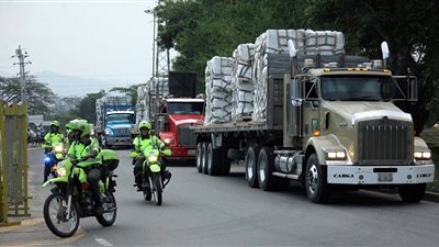اندلاع النيران بشاحنة مساعدات أمريكية على الحدود الكولومبية –الفنزويلية (فيديو)