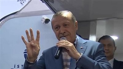 "أردوغان" يرفع شارة رابعة للمرة الثانية خلال كلمته للشعب التركي (صور)