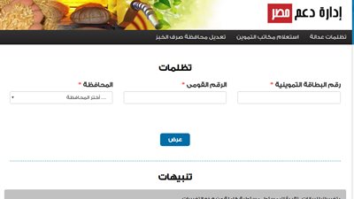 موقع دعم مصر متاح الآن لتحديث بيانات بطاقة التموين | اعرف موعد تظلمات التموين المرحلة الرابعة "تعديل محافظة صرف الخبز"