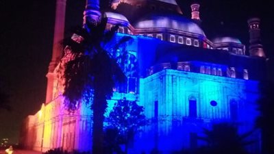 "احتفالًا بيوم الكبد العالمي".. إضاءة جامع محمد علي بالأزرق والأحمر