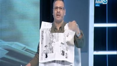 "القرموطي" يرتدي ثوب مهلهل من أوراق الصحف على الهواء (فيديو)