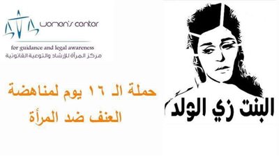 "البنت زي الولد.. شركاء لإنهاء العنف ضد المرأة" حملة لمركز الإرشاد والتوعية القانونية