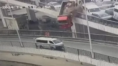 "العربيات اتعجنت".. لحظة اصطدام "لوري" بسيارات على محور المريوطية